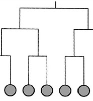 \(\rm A,\;B,\;C,\;D\) \(4\) 명이 그림과 같은 대진표에 따라 경기를 한다. 이들은 숫자 \(1,\;2,\;3,\;4\) 가 각각 한 개씩 적힌 카드가 들어 있는 주머니에서 카드를 임의로 하나씩 꺼내어 나온 번호를 위치한다.
