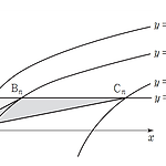 자연수 \(n\) 에 대하여 그림과 같이 세 곡선 \(y=\log _2 x +1\), \(y=\log _2 x\), \(y=\log _2 \left ( x-4^n \right )\) 이 직선 \(y=n\) 과 만나는 세 점을 각각 \({\rm A}_n, \;{\rm B}_n, \; {\rm C}_n\) 이라 하자. 두 삼각형 \(\rm A_{\it n} OB_{\it n} , \; B_{\it n}OC_{\it n}\) 의 넓이를 각각 \(S_n,\; T_n\) 이라 할 때, \(\dfrac{T_n}{S_n} = 64\) 를 만족시키는 \(n\) 의 값을 구하시오. (단, \(\rm O\) 는 원점이다.) 정답 \(5\)
