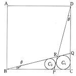 그림과 같이 한 변의 길이가 $1$ 인 정사각형 $\rm ABCD$ 의 두 변 $\rm BC, \; DC$ 위에 $\angle {\rm PDC} = \angle {\rm QBC} = \theta$ 가 되도록 점 $\rm P$ 와 $\rm Q$ 를 각각 잡고 선분 $\rm BQ$ 와 선분 $\rm DP$ 의 교점을 $\rm R$ 라 하자. 사각형 $\rm RPCQ$ 에 내접하는 원 $C_1$ 의 반지름의 길이를 $r_1$, 삼각형 $\rm RBP$ 에 내접하는 원 $C_2$ 의 반지름의 길이를 $r_2$ 라 할 때, $\lim \limits_{\theta \to 0^+}\dfrac{r_2}{r_1}$ 의 값은?① $\dfrac{1}{4}$ ② $\dfrac{\sqrt{2}}{4}$ ③ $\dfrac{1}{..