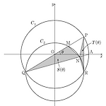 그림과 같이 좌표평면 위에 중심이 $\rm O(0, \; 0)$ 이고 점 ${\rm A}(1, \; 0)$ 을 지나는 원 $C_1$ 위의 제1사분면 위의 점을 $\rm P$ 라 하자. 점 $\rm P$ 를 원점에 대칭시킨 점을 $\rm Q$ , $x$ 축에 대하여 대칭이동시킨 점을 $\rm R$ 라 하자. 선분 $\rm QR$ 를 지름으로 하는 원 $C_2$ 와 두 선분 $\rm PQ, \; AQ$ 와의 교점을 각각 $\rm M, \; N$ 이라 하자. $\angle \rm OPA = \theta$ 라 할 때, 두 삼각형 $\rm MQN, \; PNR$ 의 넓이를 각각 $S(\theta), \; T(\theta)$ 라 하자. $\lim \limits_{\theta \to 0+} \dfrac{\theta^..