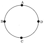 다음 그림과 같이 원 위에 네 점 \(\rm A,\;B,\;C,\;D\) 가 있다. 한 개의 주사위를 던져서 나오는 눈의 수에 따라 점 \(\rm P\) 가 \(\rm A\) 를 출발하였다. 다음과 같은 방법으로 시계 반대 방향으로 움직인다. "홀수의 눈이 나오면 안 움직이고, 짝수의 눈이 나오면 나오는 눈의 수 만큼 다른 점으로 이동한다."주사위를 \(n\) 번 던진 후에 \(\rm A\) 를 출발한 점 \(\rm P\) 가 점 \(\rm C\) 에 도달할 확률을 \({\rm P}_n\) 이라 할 때, 다음 중 옳은 것은? (단, 원 위에 두 점 사이에 간격을 \(1\) 로 본다.) ㄱ. \({\rm P}_1 = \dfrac{1}{3}\) ㄴ. \({\rm P}_{n+1} = \dfrac{1}{3} {..