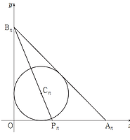 \(1\) 보다 큰 자연수 \(n\) 에 대하여 좌표평면 위의 점 \({\rm P}(n, \;0)\) 에서 원 \(x^2+y^2=1\) 에 그은 두 접선이 원과 만나는 접점을 각각 \(\rm A,\;B\) 라 하자. 삼각형 \(\rm PAB\) 의 넓이를 \(f(n)\) 이라 할 때, \(\lim \limits_{n \to \infty} \dfrac{f(n)}{\sqrt{n^2-1}}\) 의 값을 구하시오.