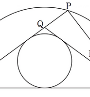 그림과 같이 길이가 $2$ 인 선분 $\rm AB$ 를 지름으로 하는 반원 위에 점 $\rm P$ 가 있다. 점 $\rm B$ 를 지나고 선분 $\rm AB$ 에 수직인 직선이 점 $\rm P$ 에서 이 반원에 접하는 직선과 만나는 점을 $\rm Q$ 라 하자. $\rm \angle PAB=\theta$ 라 하고 직선 $\rm PQ$ 와 직선 $\rm BQ$, 호 $\rm PB$ 에 동시에 접하는 원의 반지름의 길이를 $r(\theta)$ 라 할 때, $\lim \limits_{\theta \to 0+} \dfrac{r(\theta)}{\theta ^2}$ 의 값은? (단, $0<\theta < \dfrac{\pi}{4}$ 이다.)
