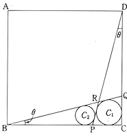 그림과 같이 $\angle {\rm B} = \theta, \;\; \overline{\rm AB}=\overline{\rm BC}=2$ 인 삼각형 $\rm ABC$ 가 있다. 선분 $\rm BC$ 의 연장선 위에 $\overline{\rm AC} = \overline{\rm CD} $ 가 되도록 점 $\rm D$ 를 잡는다. 삼각형 $\rm ACD$ 에 내접하는 원의 반지름의 길이를 $r(\theta)$ 라 할 때, $\lim \limits_{\theta \to 0+} \dfrac{r(\theta)}{\theta}=a-\sqrt{b}$ 이다. $a^2+b^2$ 의 값을 구하시오. (단, $a, \; b$ 는 자연수이다.)