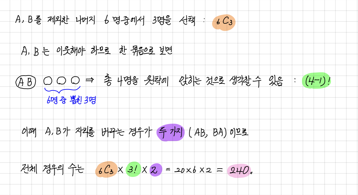 원순열&이웃해야 하는 조건_난이도 중 (2020년 9월 평가원 고3 나형 14번) 본문