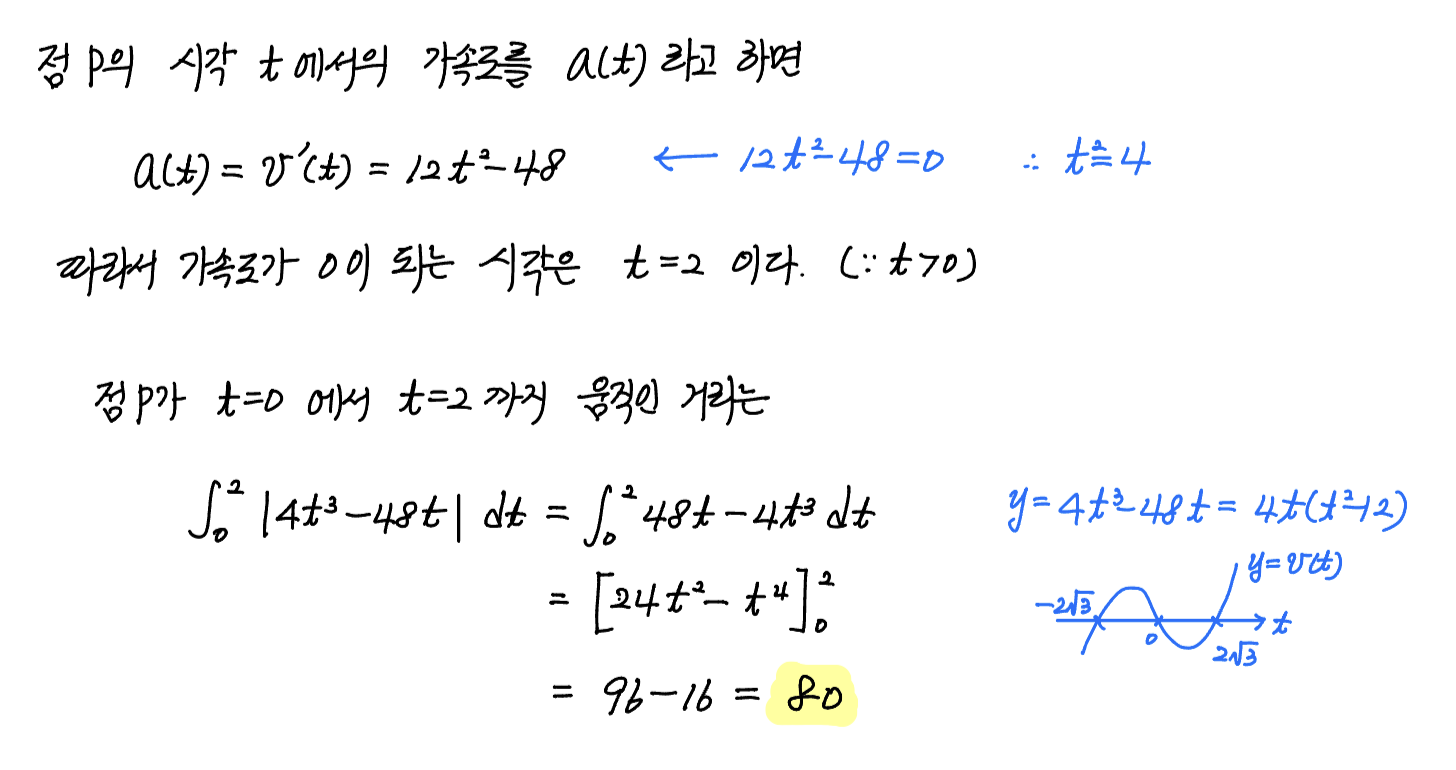 속도 거리와 적분_난이도 중 (2022년 10월 전국연합 고3 19번) 본문
