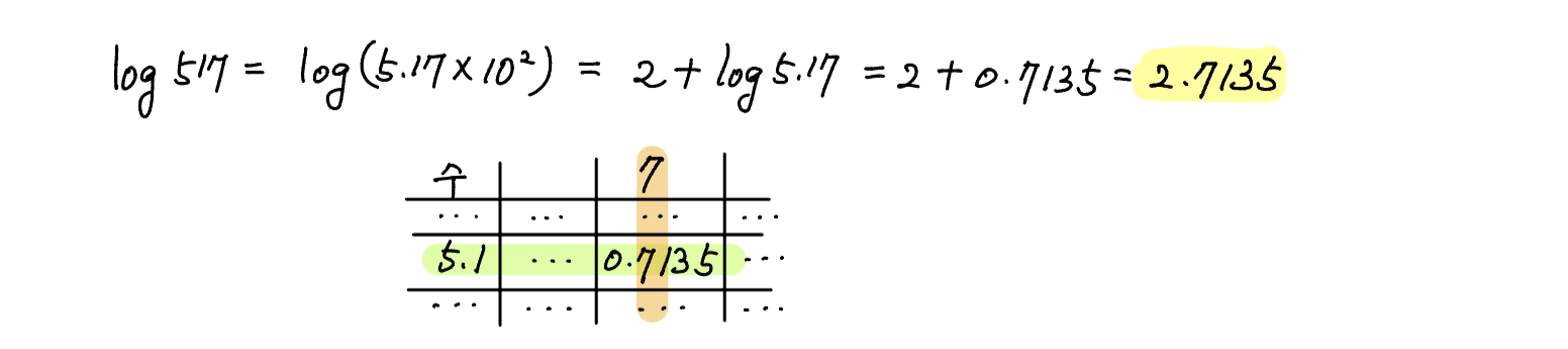 $\log 517$ 의 값을 위의 표를 이용하여 구한 것은?