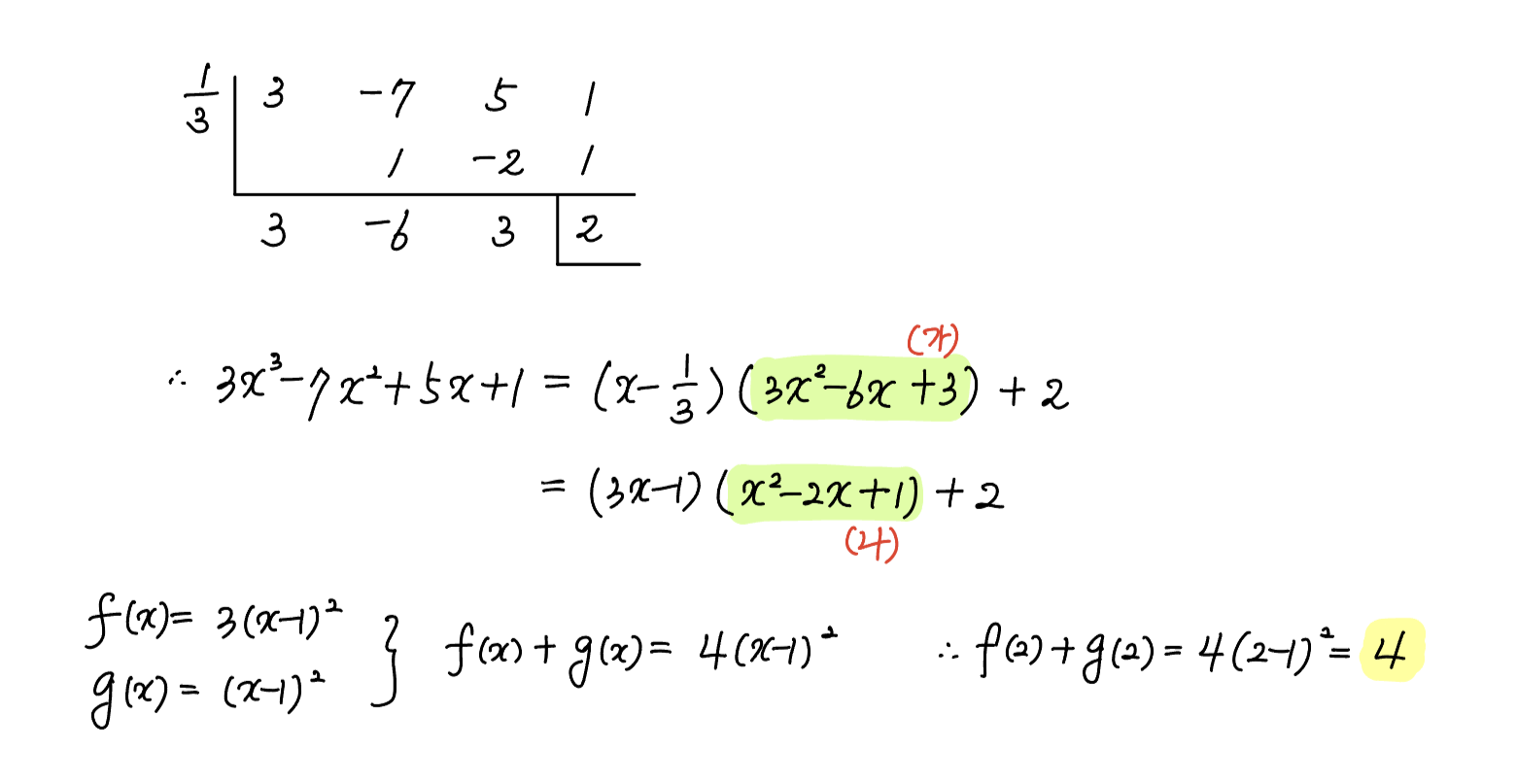위의 (가), (나)에 들어갈 식을 각각 $f(x), \; g(x)$ 라 할 때, $f(2)+g(2)$ 의 값은?