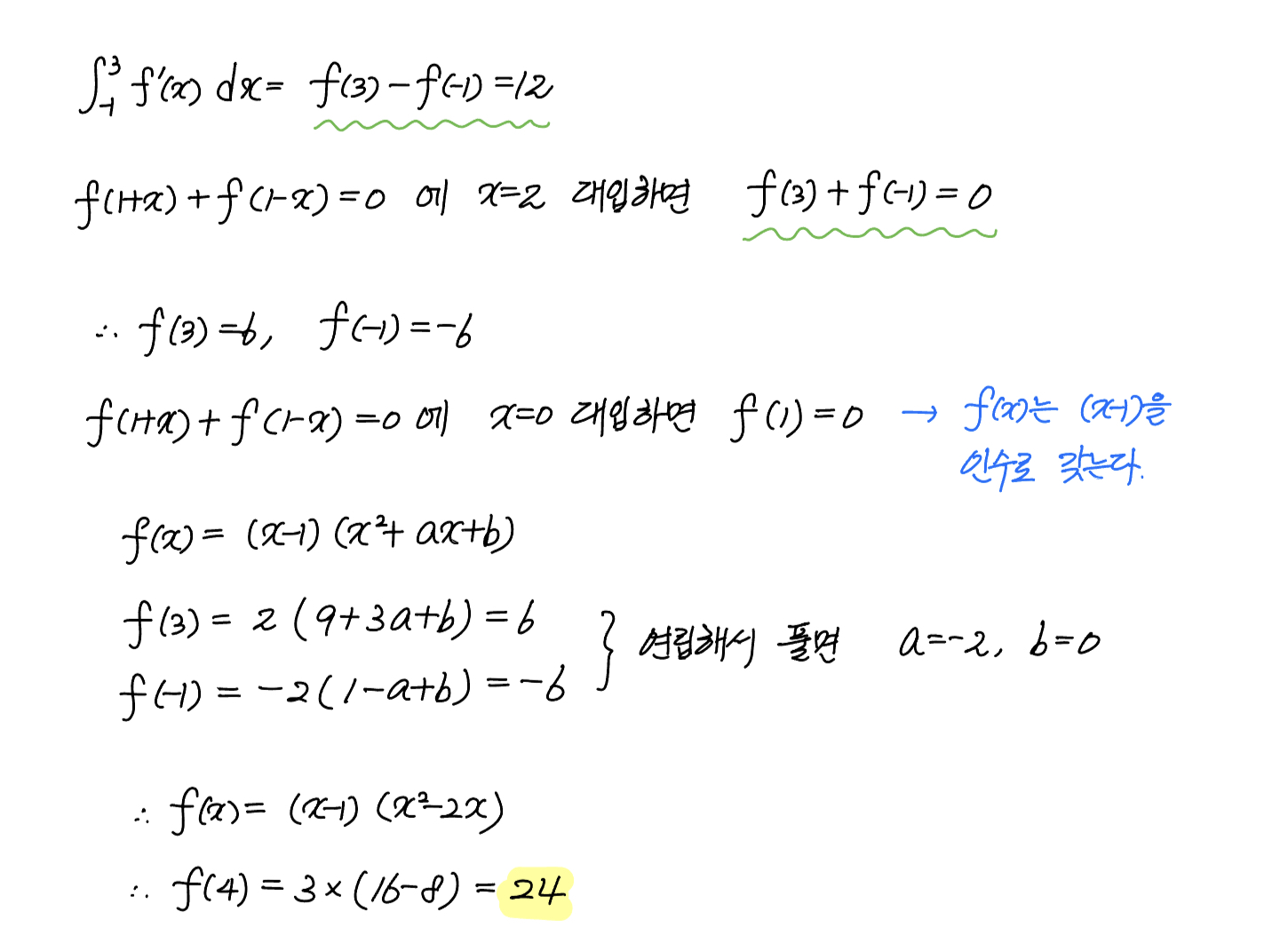 (나) $\displaystyle \int_{-1}^3 f'(x) dx = 12$