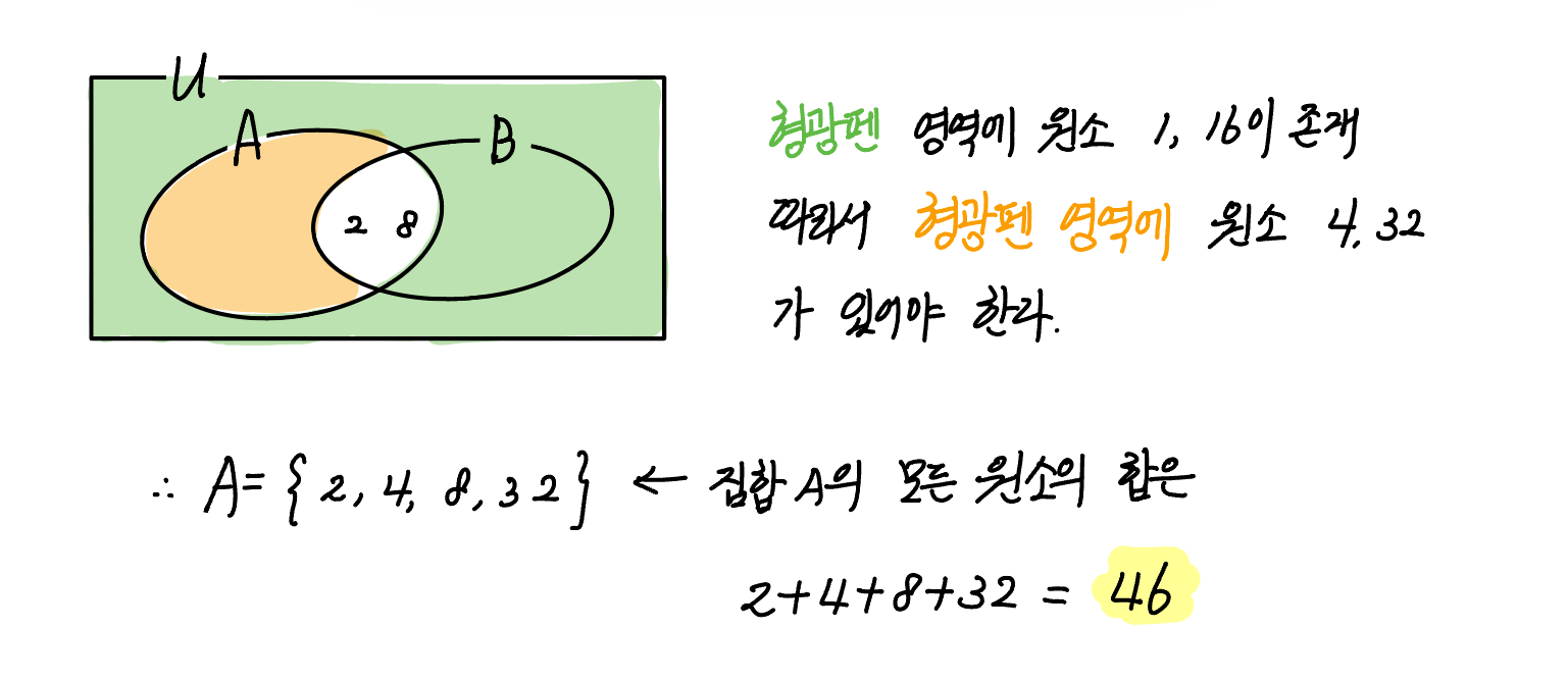 집합 $A$ 의 모든 원소의 합은?