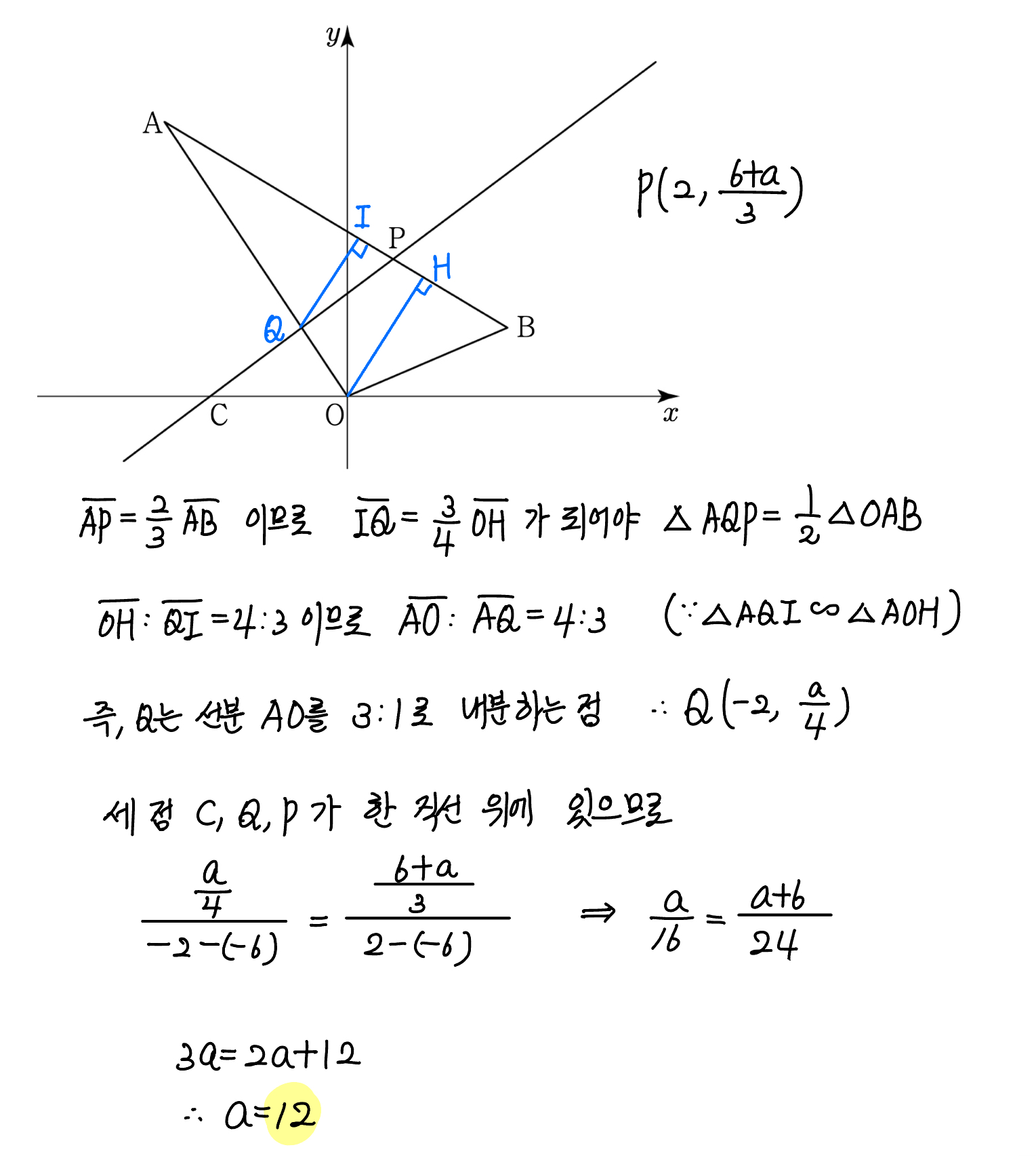좌표평면에서 선분의 내분점 & 직선의 기울기_난이도 중상 (2024년 9월 전국연합 고1 20번) 본문