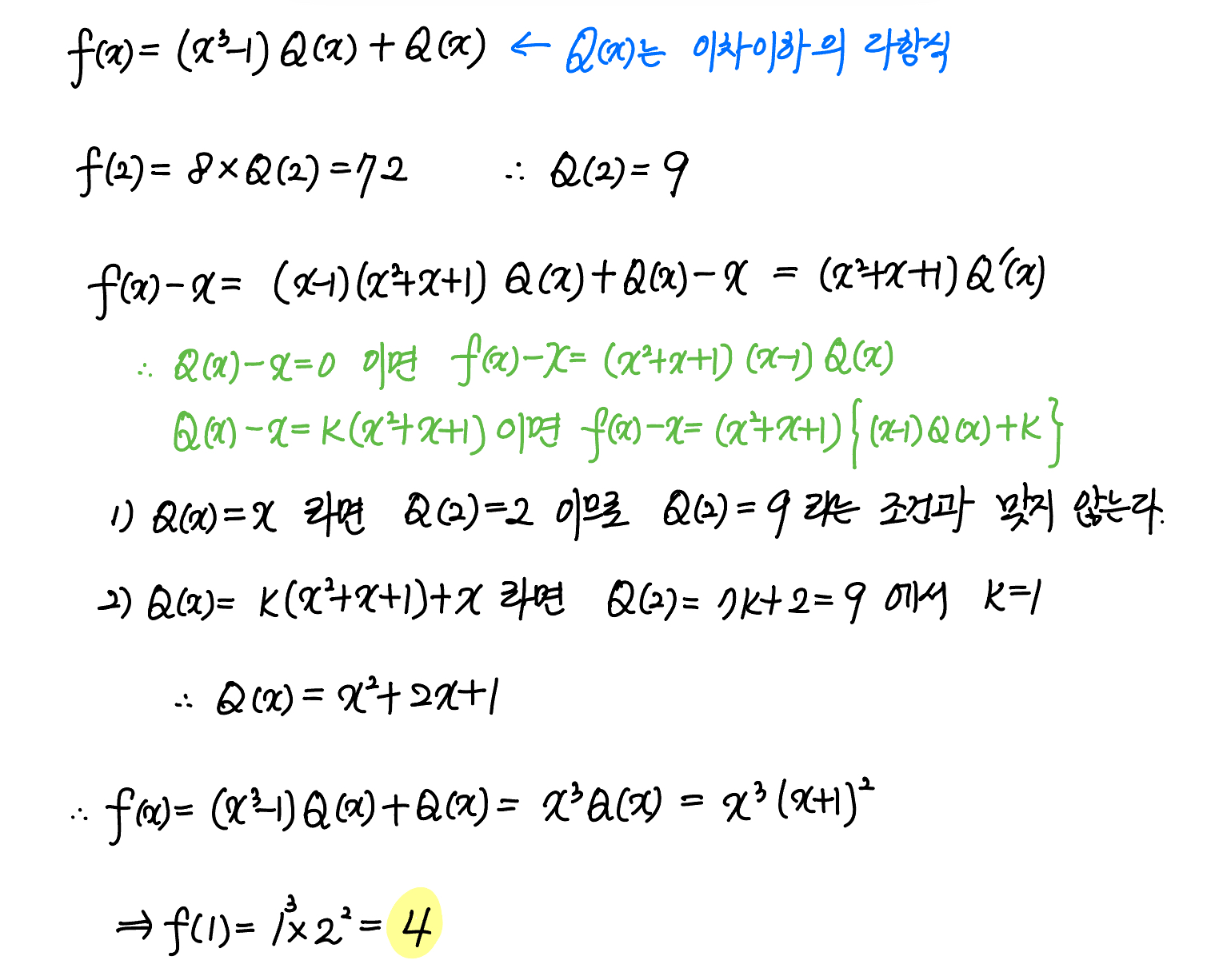 (나) $f(x)-x$ 는 $x^2+x+1$ 로 나누어떨어진다.