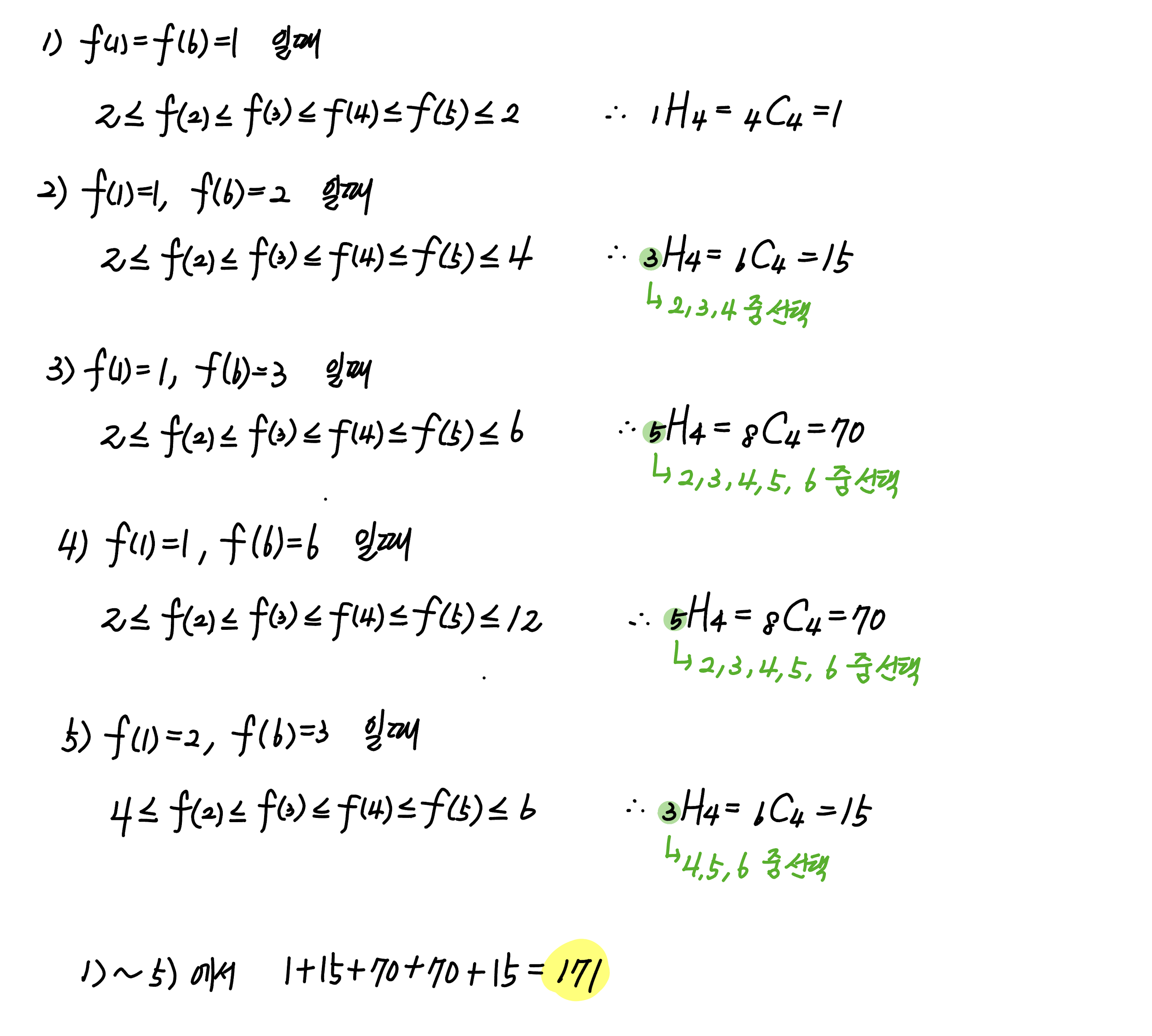 함수의 개수_중복조합_난이도 중 (2024년 11월 수능 확통 28번) 본문