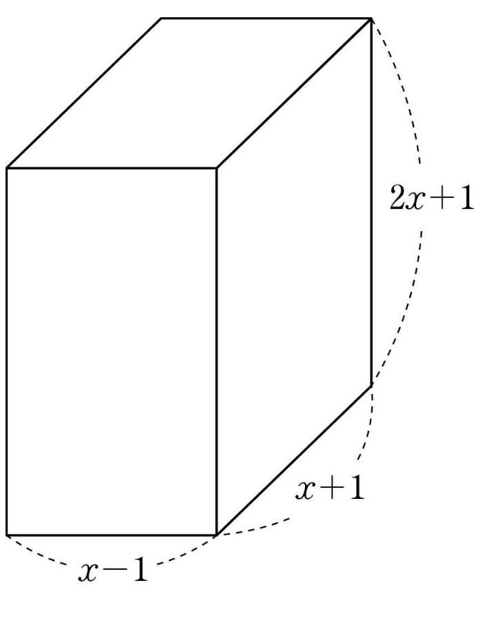 세 모서리의 길이가 $x - 1$, $x + 1$, $2x + 1$인 직육면체의 겉넓이는? (단, $x > 1$)