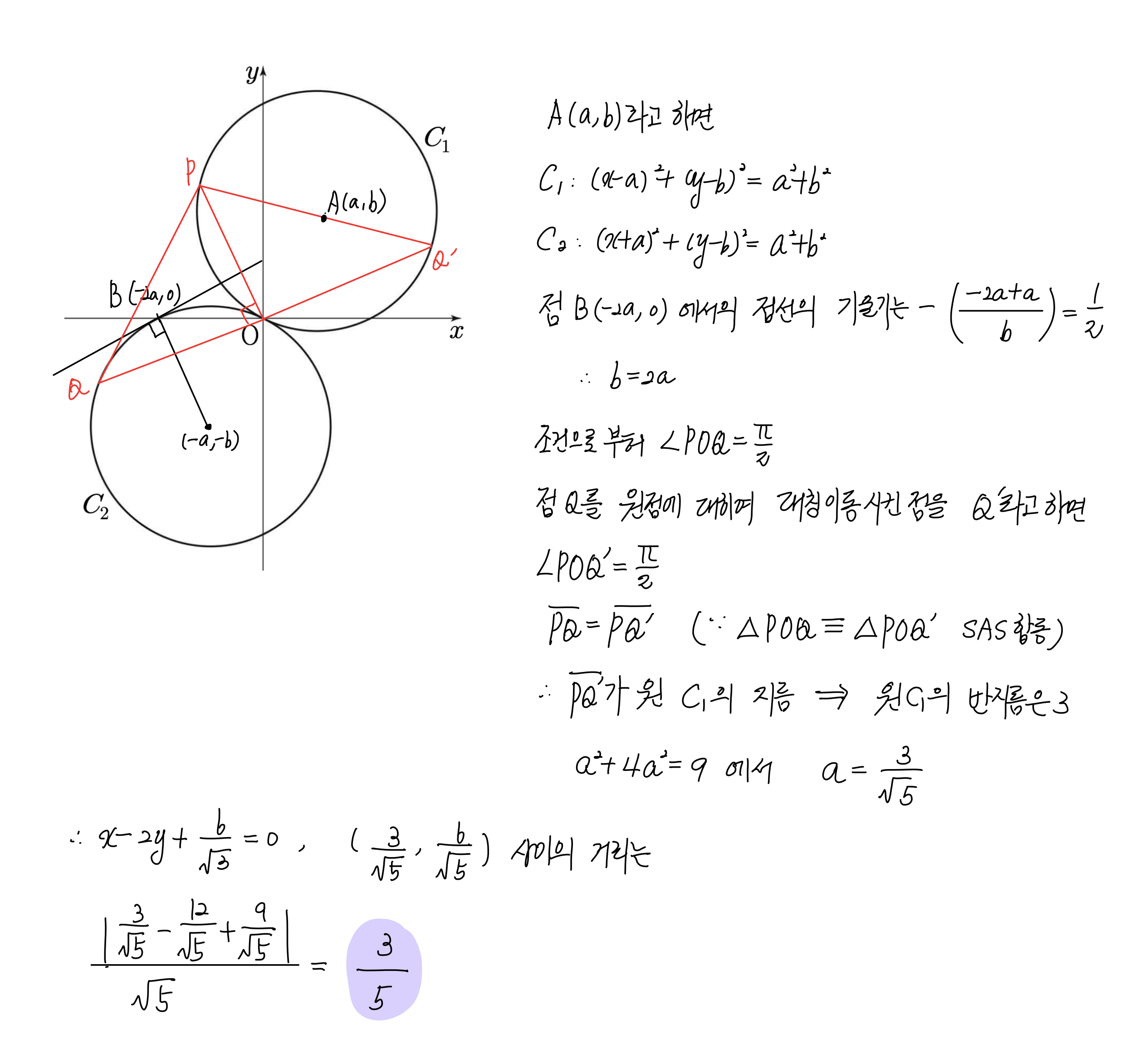 점과 도형의 대칭이동 & 점과 직선 사이의 거리_난이도 중상 (2025년 10월 고1 21번)