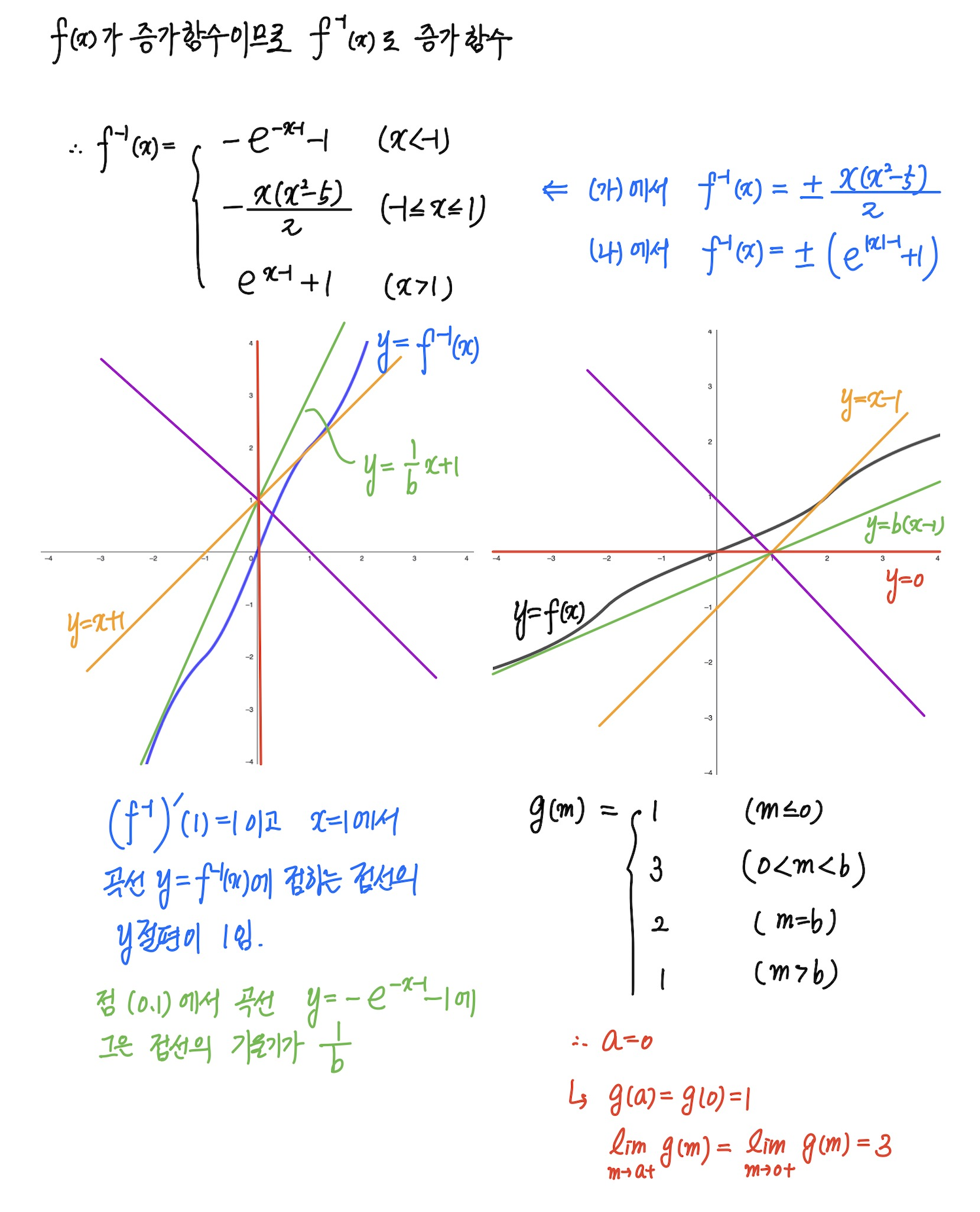 여러 가지 함수의 미분법 & 함수의 연속과 불연속 & 역함수_난이도 상 (2025년 11월 수능 미적분 30번) 본문