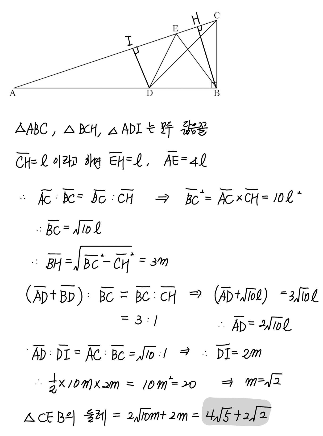 ① $\sqrt{5}+2\sqrt{10}$ ② $3\sqrt{2}+2\sqrt{5}$ ③ $2\sqrt{5}+2\sqrt{10}$ ④ $2\sqrt{2}+4\sqrt{5}$ ⑤ $4\sqrt{5}+\sqrt{10}$