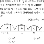 그림과 같이 반지름의 길이가 \(a\) 인 반원 \(\rm C_1\) 에 내접하는 정사각형을 \(A_1\) 이라 하자. \(A_1\) 의 한 변의 길이를 반지름으로 하는 반원 \(\rm C_2\) 에 내접하는 정사각형을 \(A_2\) 라 하자. \(A_2\) 의 한 변의 길이를 반지름으로 하는 반원 \(\rm C_3\) 에 내접하는 정사각형을 \(A_3\) 라 하자. 이와 같은 과정을 계속하여 정사각형을 만들어 나갈 때, 이들 정사각형의 넓이의 합은? ① \(a^2\) ② \(2a^2\) ③ \(3a^2\) ④ \(4a^2\) ⑤ \(5a^2\) 정답 ④