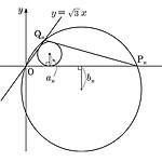 좌표평면 위에서 직선 \(y=\sqrt{3}x\) 가 있다. 자연수 \(n\) 에 대하여 \(x\) 축 위의 점 중에서 \(x\) 좌표가 \(n\) 인 점을 \({\rm P}_n\), 직선 \(y=\sqrt{3}x\) 위의 점 중에서 \(x\) 좌표가 \(\dfrac{1}{n}\) 인 점을 \({\rm Q}_n\) 이라 하자. 삼각형 \({\rm OP}_n{\rm Q}_n\) 의 내접원의 중심에서 \(x\) 축까지의 거리를 \(a_n\), 삼각형 \({\rm OP}_n{\rm Q}_n\) 의 외접원의 중심에서 \(x\) 축까지의 거리를 \(b_n\) 이라 할 때, \(\lim \limits_{n \to \infty} a_n b_n = L\) 이다. \(100L\) 의 값을 구하시오. (단 \(\rm O\..