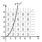 그림과 같이 좌표평면의 제 \(1\)사분면을 한 변의 길이가 \(1\) 인 정사각형들로 나누어 자연수를 배열하였다. \(y=x^2\;\;(0\le x \le 10)\) 의 그래프가 지나는 한 변의 길이가 \(1\) 인 정사각형에 배열된 수들의 합은? (단, 그래프가 정사각형의 내부를 지나지 않는 경우는 제외한다.) ① \(5625\) ② \(5640\) ③ \(5665\) ④ \(5680\) ⑤ \(5695\) 정답 ③