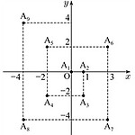 좌표평면에서 점 \(\rm A_{\it n}\) \((n=1,\;2,\;3,\; \cdots)\) 을 다음 규칙에 따라 정한다. (가) 점 \(\rm A_1\) 의 좌표는 \((0,\;0)\) 이다. (나) 점 \({\rm A}_{4n-3}\) 을 \(x\) 축 방향으로 \((4n-3)\) 만큼 평행이동시킨 점은 \({\rm A}_{4n-2}\) 이다. (다) 점 \({\rm A}_{4n-2}\) 을 \(y\) 축 방향으로 \((4n-2)\) 만큼 평행이동시킨 점은 \({\rm A}_{4n-1}\) 이다. (라) 점 \({\rm A}_{4n-1}\) 을 \(x\) 축 방향으로 \((4n-1)\) 만큼 평행이동시킨 점은 \({\rm A}_{4n}\) 이다. (마) 점 \({\rm A}_{4n}\) 을 \(..