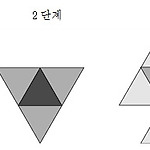 그림과 같이 넓이가 \(1\) 인 정삼각형 모양의 타일을 다음과 같은 규칙으로 붙인다. [1단계] 정삼각형 모양의 타일을 한 개 붙인다. [\(n\)단계] \(n-1\) 단계에서 붙여진 타일의 바깥쪽 테두리의 각 변에 정삼각형 모양의 타일을 붙인다. 이와 같이 \(10\) 단계를 시행했을 때, 타일로 덮인 부분의 전체의 넓이를 구하시오. 정답 136