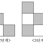 한 면은 흰 색, 다른 며면은 검은색인 같은 크기의 정사각형 모양의 카드를 다음 규칙에 의해 그림과 같이 놓는다. [1단계] 검은색 면이 보이도록 카드를 한 개 놓는다. [2단계] 1단계에서 놓여진 카드를 흰 색 며면이 보이도록 뒤집고, 그 카드 위쪽과 오른쪽에 검은색 며며니 보이도록 두 개의 카드를 놓는다. [3단계] 2단계에서 놓여진 모든 카드의 색이 바뀌도록 뒤집고 2단계에서 새로 놓은 카드의 위쪽과 오른쪽에 검은색 면이 보이도록 세 개의 카드를 놓는다. \(\vdots\) [\(n\)단계] \(n-1\) 단계에서 놓여진 모든 카드의 색이 바뀌도록 뒤집고 \(n-1\) 단계에서 새로 놓은 카드의 위쪽과 오른쪽에 검은색 면이 보이도록 \(n\) 개의 카드를 놓는다. \(n\) 단계에서 보이는 면의 색..