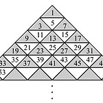 그림과 같이 홀수를 삼각형 모양으로 배열하고 어두운 부분에 있는 수를 크기 순으로 나열하여 수열 \[1,\;3,\;7,\;9,\;13,\;17,\;19,\; \cdots\] 을 만들었다. 이 수열의 제 \(66\) 항을 구하시오. 정답 241