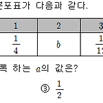 이산확률변수 \(X\) 의 확률분포표가 다음과 같다. \(X\) 의 분산을 최대가 되도록 하는 \(a\) 의 값은? ① \(\large \frac{1}{3}\) ② \(\large \frac{5}{12}\) ③ \(\large \frac{1}{2}\) ④ \(\large \frac{7}{12}\) ⑤ \(\large \frac{2}{3}\) 정답 ②