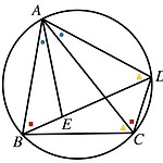 톨레미의 정리는 그림과 같이 원에 내접하는 사각형의 네 변과, 두 대각선 사이의 관계를 나타낸다. \[\overline{\rm AB} \times \overline{\rm CD} + \overline{\rm BC} \times \overline{\rm AD} = \overline{\rm AC} \times \overline{\rm BD}\] \(\angle{\rm CAD} = \angle {\rm BAE}\) 가 되도록 \(\overline{\rm BD}\) 위에 점 \(\rm E\) 를 잡는다. 이때, \(\angle {\rm ABD}\) 와 \(\angle{\rm ACD}\) 는 호 $\rm AD$ 에 대한 원주각이므로 서로 같다. 또한 \(\angle {\rm ADB}\) 와 \(\angle {\r..