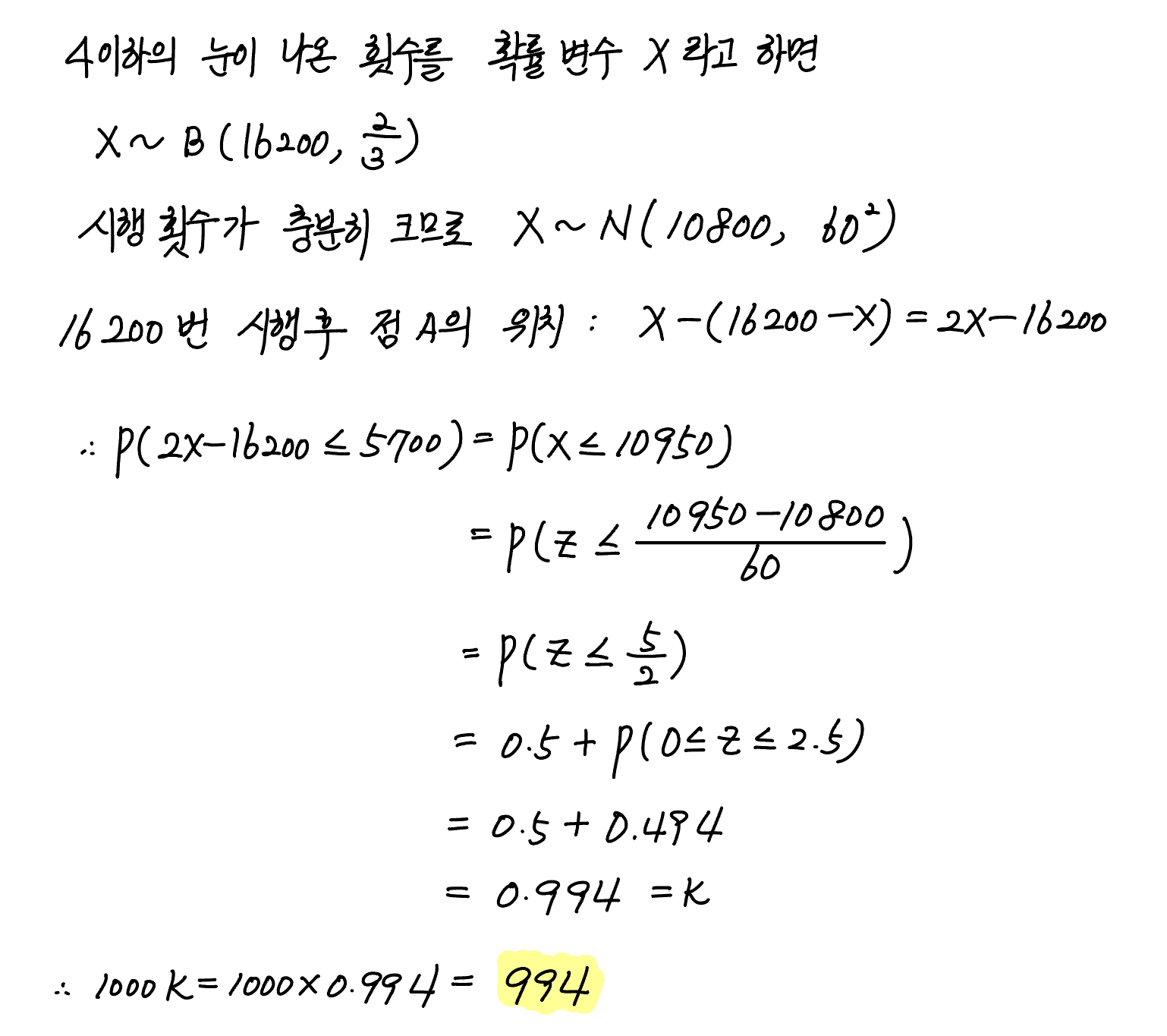 이항분포의 정규분포로의 근사_난이도 중 (2024년 9월 평가원 확통 29번)