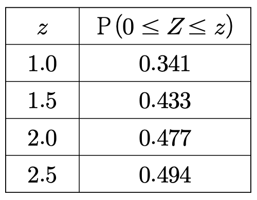 이 시행을 $16200$ 번 반복하여 이동된 점 $\mathrm{A}$ 의 위치가 $5700$ 이하일 확률을 아래 표준정규분포표를 이용하여 구한 값을 $k$ 라 하자. $1000 \times k$ 의 값을 구하시오.