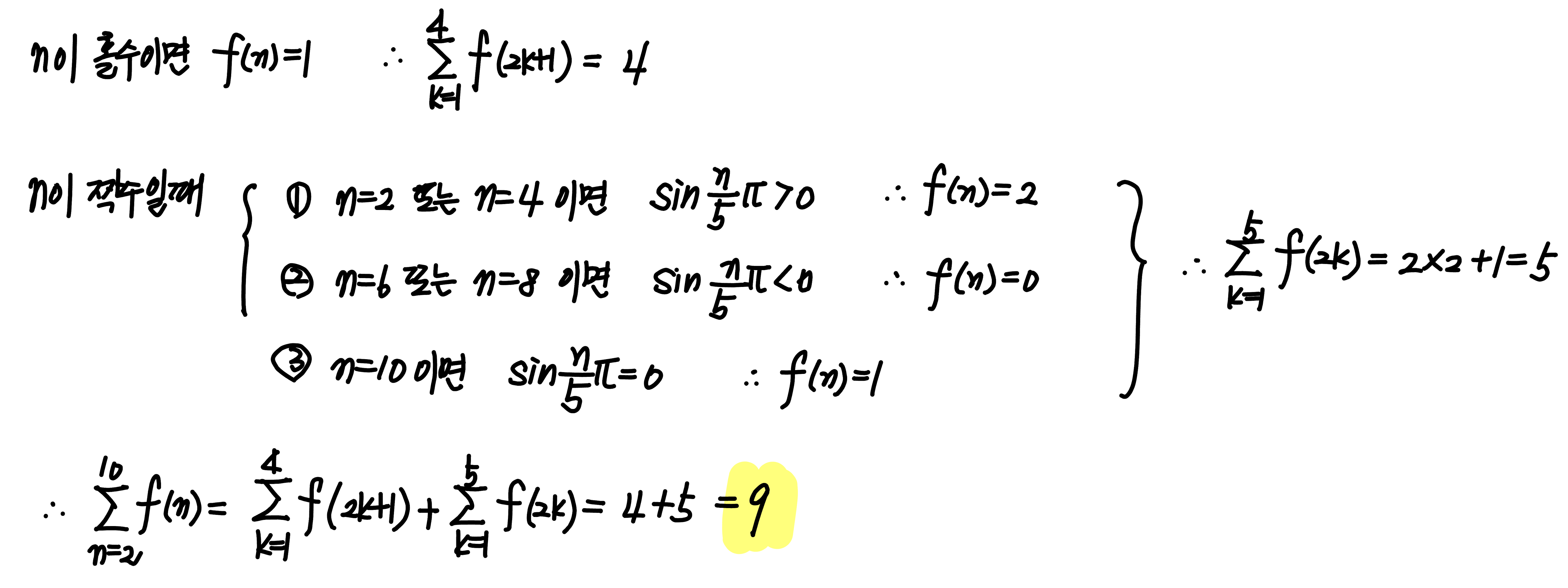 자연수 $n \; (n \ge 2)$ 에 대하여 $\sin \dfrac{n}{5}\pi$ 의 $n$제곱근 중 실수인 것의 개수를 $f(n)$ 이라 할 때, $\sum \limits_{n=2}^{10} f(n)$ 의 값은?
