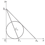 자연수 \(n\) 에 대하여 그림과 같이 두 점 \({\rm A}_n (n, \;0), \; {\rm B}_n (0, \; n+1) \) 이 있다. 삼각형 \(\rm A_{\it n}B_{\it n}\) 에 내접하는 원의 중심을 \({\rm C}_n\) 이라 하고, 두 점 \(\rm B_{\it n}\) 과 \(\rm C_{\it n}\) 을 지나는 직선이 \(x\) 축과 만나는 점을 \(\rm P_{\it n}\) 이라 하자. \(\lim \limits_{n \to \infty} \dfrac{\overline{\rm OP_{\it n}}}{n}\) 의 값은? (단, \(\rm O\) 는 원점이다.)① \(\dfrac{\sqrt{2}-1}{2}\) ② \(\sqrt{2}-1\) ③ \(2-\sqrt{2}..