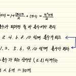 두 수열 \(\{a_n\},\;\{b_n\}\) 이 자연수 \(n\) 에 대하여 \[a_n = 5n+1\] \[b_1=1, \;\; b_{n+1}-b_n=n+1\] 을 만족시킨다. \(10\) 이하인 두 자연수 \(k,\;l\) 에 대하여 \(a_k\) 와 \(b_l\) 의 곱이 홀수가 되는 순서쌍 \((k, \;l)\) 의 개수를 구하시오. 정답 \(30\)