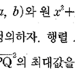 원 \(x^2 +y^2 =1\) 위의 점 \({\rm P} (a,\;b)\)와 원 \(x^2 +y^2 =25\) 위의 점 \({\rm Q}(c,\; d)\) 에 대하여 행렬 \(A=\left ( \matrix { a& b \\ c& d} \right ) \) 로 정의하자. 행렬 \(A\) 이 역행렬이 존재하지 않도록 두 점 \(\rm P,\;Q\) 를 정할 때, \(\overline {\rm PQ}^2 \) 의 최댓값을 구하시오. 정답 36