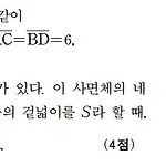 오른쪽 그림과 같이 \(\overline {\rm AB} = \overline {\rm CD}=5,\;\; \overline {\rm AC} = \overline {\rm BD}=6,\;\; \overline {\rm AD} = \overline {\rm BC}=7\) 인 사면체 \(\rm DABC\) 가 있다. 이 사면체의 네 꼭짓점을 지나는 구의 겉넓이를 \(S\)라 할 때, \(\dfrac{S}{\pi}\) 의 값을 구하시오. 정답 55