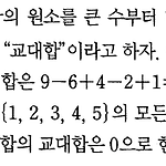 공집합이 아닌 집합의 원소를 큰 수부터 나열한 뒤 "-" 와 "+"를 교대로 넣어 셈한 값을 "교대합"이라고 하자. 예를 들어 집합 \(\{1,\;2,\;4,\;6,\;9\}\) 의 교대합은 \(9-6+4-2+1=6\) 이고 집합 \(\{5\}\) 의 교대합은 \(5\) 이다. 집합 \(A=\{1,\;2,\;3,\;4,\;5\}\) 의 모든 부분집합의 교대합의 합을 구하시오. (단, 공집합의 교대합은 \(0\) 으로 한다.) 정답 80