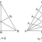 정삼각형 \(\rm ABC\) 에서 변 \(\rm AC\) 를 \((n+1)\) 등분한 점을 각각 \(\rm A_1 ,\;A_2 ,\; A_3 , \; \cdots,\;A_{\it n}\) 이라 하고, 변 \(\rm BC\) 를 \((n+1)\) 등분한 점을 각각 \(\rm B_1 ,\;B_2 ,\; B_3 , \; \cdots,\;B_{\it n}\) 이라 하자. 다음 [단계] 와 같은 순서로 선분을 긋는다. [단계1] 꼭짓점 \(\rm C\) 와 선분 \(\rm AB\) 의 중점 \(\rm M\) 을 여연결한 선분 \(\rm CM\) 을 긋는다. [단계2] 꼭짓점 \(\rm A\) 와 점 \(\rm B_1 ,\;B_2 ,\; B_3 , \; \cdots,\;B_{\it n}\) 을 각각 연결한 선분 ..