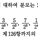 \(2\) 이상의 자연수 \(n\) 에 대하여 분모는 \(2^n\) 꼴이고, 분자는 분모보다 작은 홀수로 이루어진 수열 \[\frac {1}{2^2} , \;\; \frac {3}{2^2} , \;\; \frac {1}{2^3} , \;\; \frac {3}{2^3} , \;\; \frac {5}{2^3} , \;\; \frac {7}{2^3} , \;\; \frac {1}{2^4} , \;\; \frac {3}{2^4} , \;\; \cdots\] 에서 제 \(126\) 항과 첫째항부터 제 \(126\) 항까지의 합을 구하여라. 정답 \({\Large \frac{127}{128}},\; 63\)