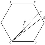 정육각형 \(\rm ABCDEF\) 에서 \(\overline{\rm EF}\) 의 중점을 \(\rm M\), \(\overline{\rm EM}\) 의 중점을 \(\rm N\), \(\angle \rm MCN= \theta\) 라 할 때, \(\tan \theta\) 의 값은? ① \(\dfrac{2\sqrt{3}}{25}\) ② \(\dfrac{2\sqrt{3}}{23}\) ③ \(\dfrac{4\sqrt{3}}{23}\) ④ \(\dfrac{6\sqrt{3}}{25}\) ⑤ \(\dfrac{6\sqrt{3}}{23}\) 정답 ①