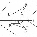 직선 \(l\) 을 교선으로 하는 두 평면 \(\alpha, \; \beta\) 가 있다. 그림과 같이 평면 \(\alpha\) 위에 \(\overline{\rm AC}=\overline{\rm BC}=1\) 이고, 변 \(\rm BC\) 는 직선 \(l\) 과 평행한 삼각형 \(\rm ABC\) 가 있다. 세 점 \(\rm A, \;B,\;C\) 에서 평면 \(\beta\) 에 내린 수선의 발을 각각 \(\rm D, \;E,\;F\) 라 하면 다음이 성립한다. (가) 직선 \(\rm DF\) 는 직선 \(l\) 과 수직이다. (나) 삼각형 \(\rm DEF\) 의 넓이는 \(\dfrac{1}{3}\) 이다. 두 직선 \(\rm AB, \;DE\) 가 이루는 예각의 크기를 \(\theta\) 라 할 때,..