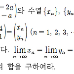 수열의 수렴과 발산 극한값의 계산 (1) - 수열의 극한에 대한 기본 성질, $\dfrac{\infty}{\infty}$ 꼴의 극한값의 계산 극한값의 계산 (2) - $\infty - \infty$ 꼴의 극한값의 계산 극한값의 계산 (3) - 수열의 극한의 대소 관계 등비수열의 극한 수열의 극한 심화개념 점화식과 극한 수열의 극한 유형정리 수열의 극한 진위형 유형정리 위 파일을 다운로드하여 풀어보세요. 해설지가 첨부되어 있습니다. 모르는 문제는 언제든지 댓글로 질문해주세요~~ 목록 다음