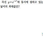 오른쪽 그림과 같이 \(x\) 축과 곡선 \(y=e^{-x^2} \) 에 동시에 접하고 있는 직사각형 \(\rm ABCD\) 가 있다. 이때, 직사각형 \(\rm ABCD\) 의 넓이의 최댓값은? ① \(\dfrac{\sqrt{2e}}{e}\) ② \(\dfrac{\sqrt{2e}}{2}\) ③ \(\sqrt{e}\) ④ \(e\) ⑤ \(\sqrt{2}e\) 정답 ①