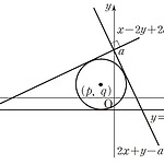 그림과 같이 \(y\) 축 위의 점 \((0,\;a)\) 에서 수직으로 만나고 있는 두 직선 \[l\;:\;2x+y-a=0,\;\;\; m\;:\; x-2y+2a=0\] 이 있다. 중심이 \((p, \;q)\) 이고 두 직선 \(l,\;m\) 과 직선 \(y=-1\) 로 둘러싸인 삼각형에 내접하는 원에 대하여 \(\lim \limits_{a\to +0} p\) 의 값은? ① \(\dfrac{\sqrt{5}-3}{4}\) ② \(\dfrac{\sqrt{5}-3}{2}\) ③ \(\dfrac{-\sqrt{5}-3}{4}\) ④ \(\dfrac{-\sqrt{5}-3}{2}\) ⑤ \(-3\) 정답 ①