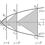 두 함수 \(f(x)=\log _2 x \) 와 \(g(x)=- \log _2 x\) 의 그래프의 교점을 \(\rm A_1\), 직선 \(x=2\) 가 세 함수 \(y=f(x),\; y=0,\; y=g(x)\) 의 그래프와 만나는 점을 각각 \(\rm B_1 ,\; A_2 ,\; C_1\) 이라 하고 삼각형 \(\rm A_1 B_1 C_1\) 의 넓이를 \(S_1\) 이라 하자. 직선 \(x=2^2\) 이 세 함수 \(y=f(x),\; y=0,\; y=g(x)\) 의 그래프와 만나는 점을 각각 \(\rm B_2 ,\; A_3 ,\; C_2\) 이라 하고 삼각형 \(\rm A_2 B_2 C_2\) 의 넓이를 \(S_2\) 이라 하자. 직선 \(x=2^3\) 가 세 함수 \(y=f(x),\; y=0,\; y..