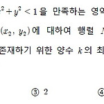 원 \({\rm O_1} \;:\; (x-2)^2 +y^2 =1\) 위의 점 \({\rm P}(a,\;b)\) 와 원 \({\rm O_2} \;:\; (x-m)^2 +(y-n)^2 =1\) 위의 점 \({\rm Q}(c,\;d)\) 에 대하여 행렬 \(M\) 을 \(M = \left( {\begin{array}{ll}a&b\\c&d\end{array}} \right)\) 라 정의하자 \(0 \le m \le 2\) 일 때, 행렬 \(M\) 의 역행렬이 존재하지 않도록 하는 두 점 \(\rm P,\;Q\) 가 존재하기 위한 점 \((m,\;n)\)이 좌표평면에 나타내는 영역의 넓이는? ① \(3\sqrt{2}\) ② \({\displaystyle \frac{7\sqrt{2}}{2}}\) ③ \(3\sqrt..