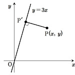 점 \({\rm P}(x, \;y)\) 에서 직선 \(y=3x\) 에 수선을 내려 그 점을 \({\rm P'}(x', \;y')\) 이라 할 때, 일차변환 \(f:{\rm P} \to {\rm P'}\) 의 행렬을 구하면? ① \(\dfrac{1}{6} \left ( \matrix{1 & 3 \\ 3 & 9 } \right )\) ② \(\dfrac{1}{6} \left ( \matrix{1 & -3 \\ 3 & -9 } \right )\) ③ \(\dfrac{1}{9} \left ( \matrix{3 & 1 \\ 9 & 3 } \right )\) ④ \(\dfrac{1}{9} \left ( \matrix{1 & 3 \\ 3 & 9 } \right )\) ⑤ \(\dfrac{1}{10} \left ( \..