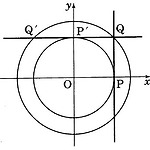 그림과 같이 점 \(\rm P(1, \;0)\) 을 지나고 \(x\) 축에 수직인 직선이 제\(1\)사분면에서 원 \(x^2+y^2=2\) 와 만나는 점을 \(\rm Q\) 라 하고, 점 \(\rm P'(0, \;1)\) 을 지나고 \(y\) 축에 수직인 직선이 제\(2\)사분면에서 원 \(x^2+y^2=2\) 와 만나는 점을 \(\rm Q'\) 이라 하자. 선분 \(\rm PQ\) 를 선분 \(\rm P'Q'\) 으로 옮기는 일차변환은 두 개가 존재한다. 이 두 개의 일차변환을 나타내는 행렬을 \(A, \;B\) 라 할 때, 행렬 \(A+B\) 는? ① \(\left ( \matrix { -2 & 1 \\ 0 & 1} \right )\) ② \(\left ( \matrix { 2 & 1 \\ -1 & ..