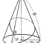 다음 그림과 같은 직원뿔 모양의 산이 있다. \(\rm A\) 지점을 출발하여 산을 한 바퀴 돌아 \(\rm B\) 지점으로 가는 관광열차의 궤도를 최단거리로 놓으면, 이 궤도는 처음에는 오르막길이지만 나중에는 내리막길이 된다. 이 내리막길의 길이는? ① \(\dfrac{200}{\sqrt{91}}\) ② \(\dfrac{300}{\sqrt{30}}\) ③ \(\dfrac{300}{\sqrt{91}}\) ④ \(\dfrac{400}{\sqrt{30}}\) ⑤ \(\dfrac{400}{\sqrt{91}}\) 정답 ⑤